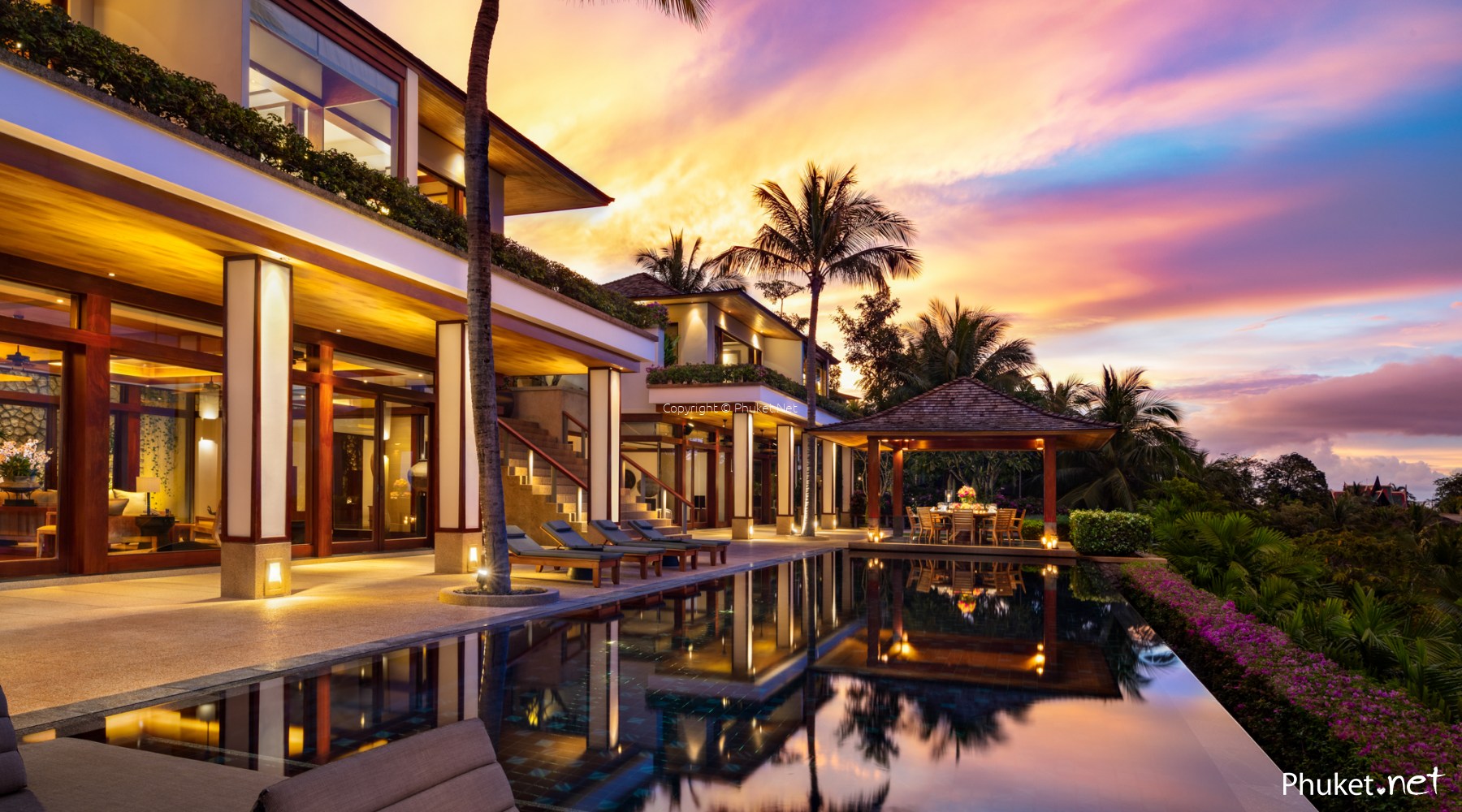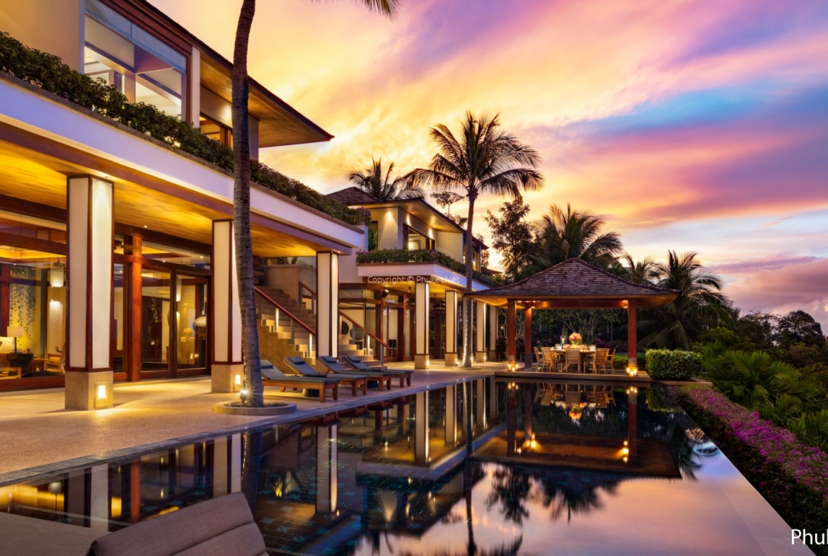 This exceptional pool villa is set in the Millionaire’s Mile area of Kamala, one of Phuket’s most exclusive coastal areas. Enjoying sweeping views across Kamala Bay and the Andaman Sea, the villa is tastefully designed with a rich blend of Thai and Balinese influences. Interior details include hardwood floors, handcrafted teak finishes, Thai artwork, and bespoke furnishings that reflect a refined yet inviting atmosphere.