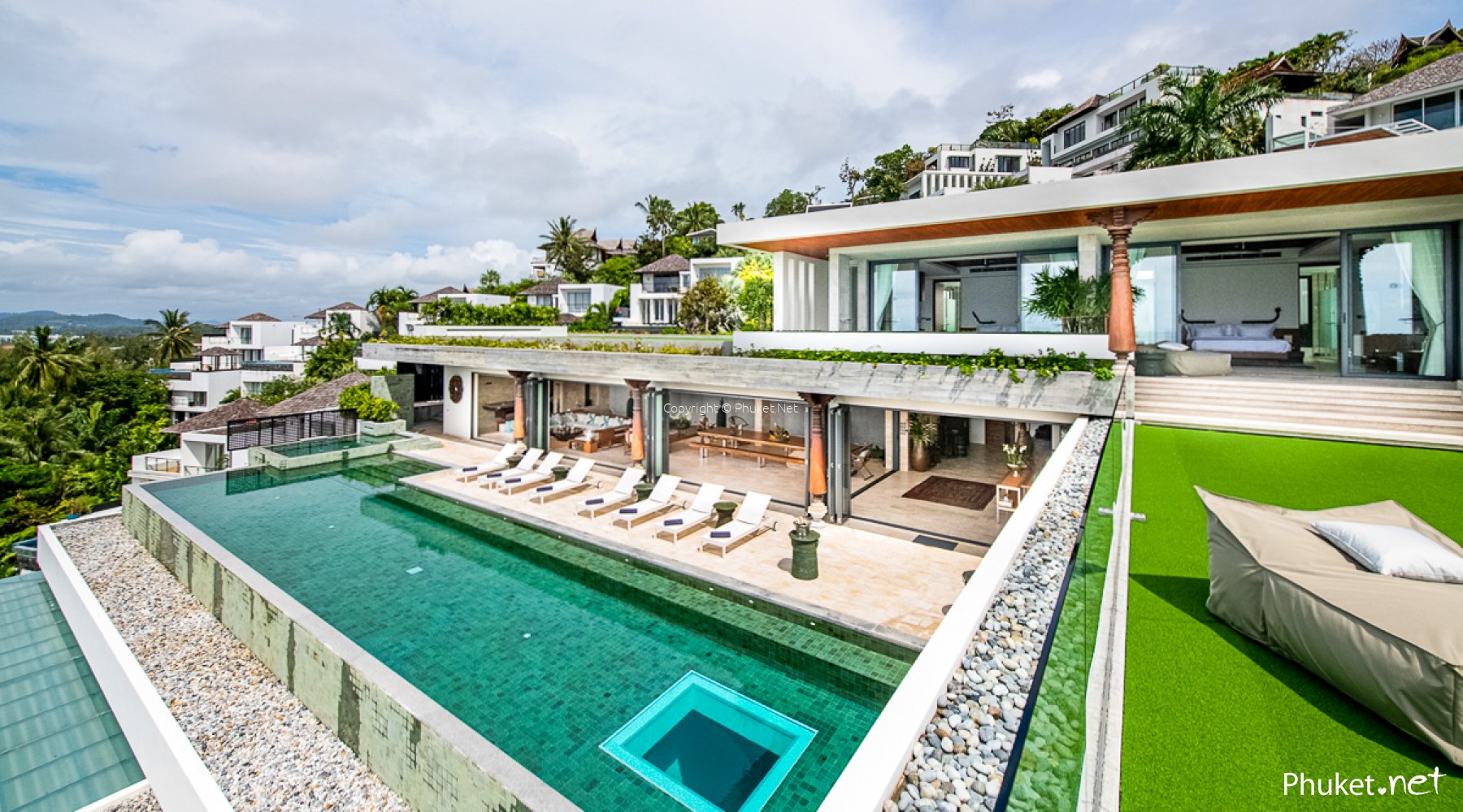 This impressive pool villa is part of an exclusive development, perched near the top of a hill with stunning views of the Andaman Sea.